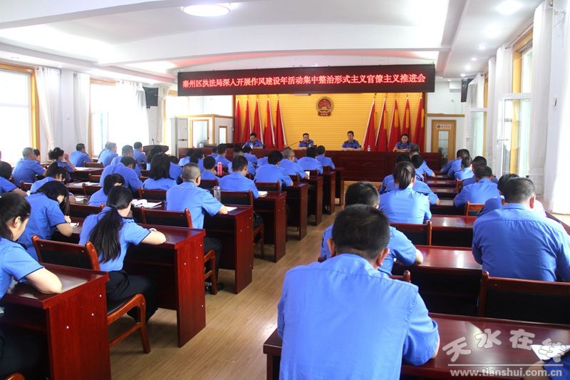 8月28日,秦州区执法局召开作风建设年集中整治形式主义官僚主义推进会。会议提出,全局要高度重视,积极行动,拿出切实管用有效的措施,对作风建设年活动再部署、再加压、再推进,切实以强烈的政治意识和时不我待的紧迫感责任感,一以贯之地抓好作风建设年活动各项工作任务的落地落实,为打赢打好脱贫攻坚战、决胜全面建成小康、建设幸福美好秦州提供坚强有力的作风保障。
