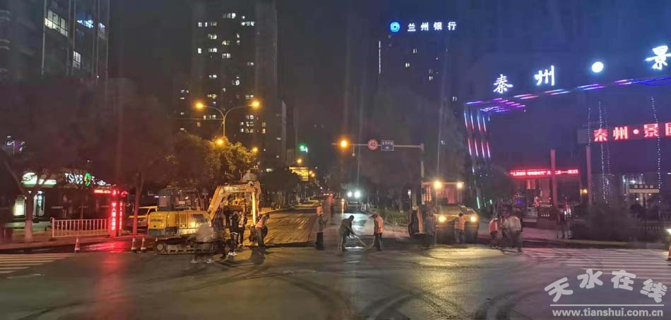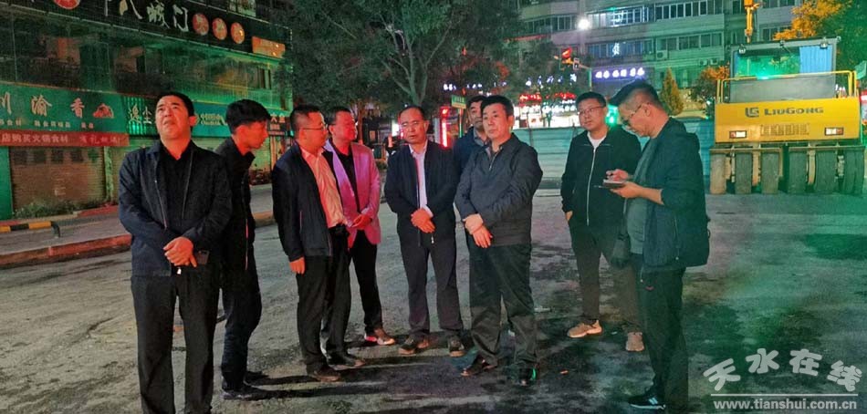 9月16日晩11点多,秦州区委副书记、区长刘文玺再次督促合作路提升改造工程施工进度,并看望了夜间施工人员和区住建、综合执法、城区交警大队工作人员。