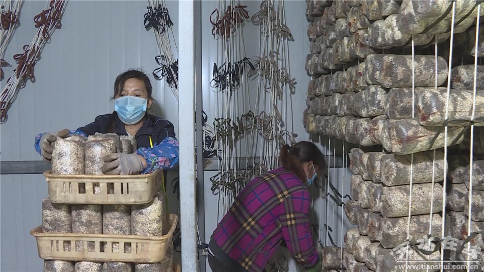 在秦岭镇,除了中药材种植外,占地面积近20000平方米的扶贫车间也迅速发展。该扶贫车间主要用来发展食用菌特色产业,车间通过以产业到户资金为群众购买菌棒,统一在车间内培育种植,再按照到户资金比例进行销售分红的形式运行,彻底解决的当地群众发展产业没有技术、没有规模、没有销路的后顾之忧。