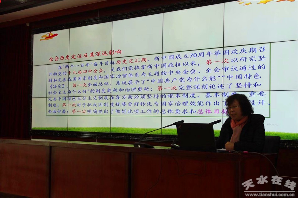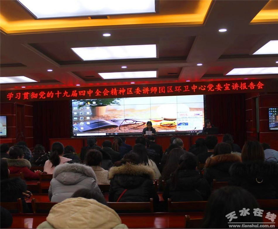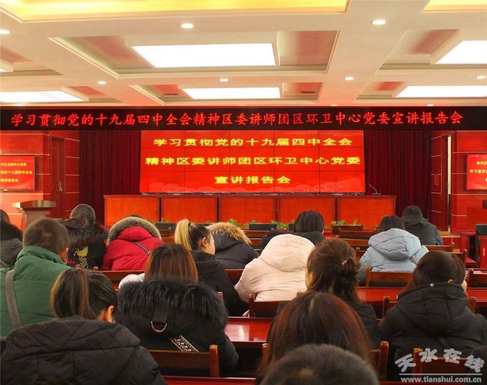 秦州区融媒体中心1月10日讯 1月7日下午,秦州区城乡环卫中心党委召开学习贯彻党的十九届四中全会精神宣讲报告会。