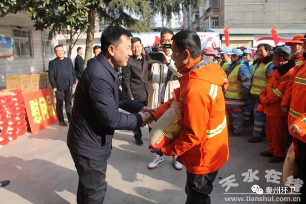 带着党和政府的深切关怀,1月22日下午,秦州区政协主席毛更生,区委常委、组织部部长赵虎生,副区长罗增芳走进区环卫治理中心,亲切看望慰问工作在一线的环卫工人代表,感谢大家一年来为城市干净整洁作出的贡献,并代表区委、区政府向常年奋战在一线的环卫工人及家属致以节日的祝贺、亲切的慰问和崇高的敬意。希望环卫工人在城市清洁工作中,要时刻增强安全意识,既要把工作干好,更要注意自身安全。祝愿环卫工人节日快乐,身体健康,合家欢乐,工作顺利。