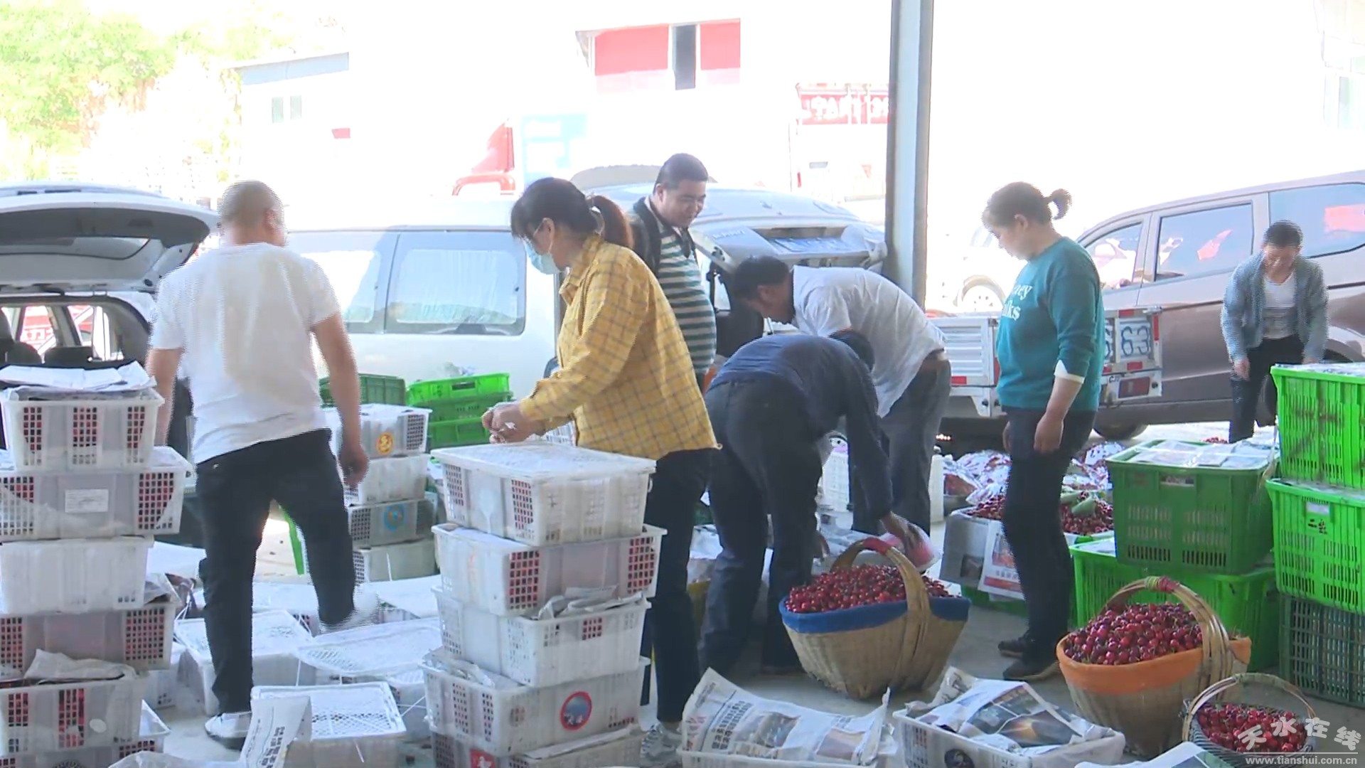 四川客商李刚说:“今天收了七八百斤了,预计收3000斤左右。收了五六年了,这边樱桃很好。天水的樱桃是山上的,山上的甜度高一点,比其他地方都要甜一点,口感好一点。四川成都的市民特别喜欢天水的樱桃,特别甜,味道又好。”