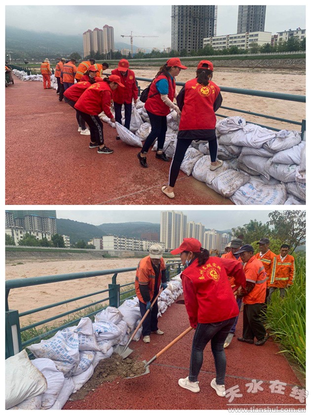 连日来,我区各地出现持续性强降雨,防汛形势十分严峻。秦州区城乡环卫治理中心新时代文明实践站志愿服务队和志愿者积极参加防汛宣传和抢险行动中,充分展现了新时代文明实践志愿者昂扬向上的精神风貌。