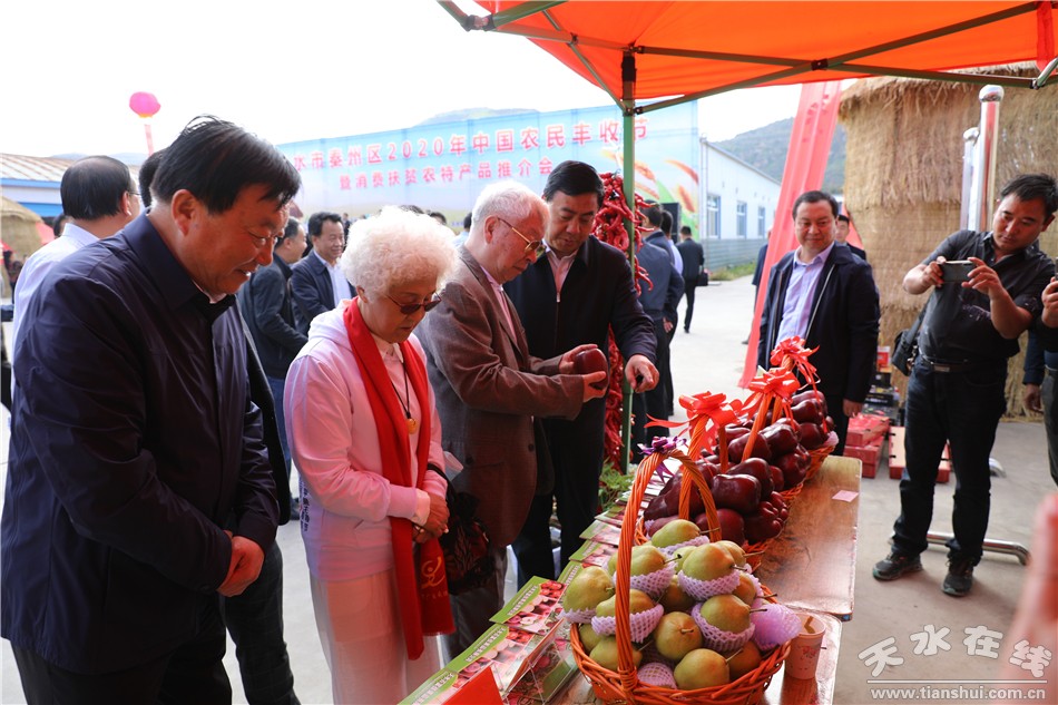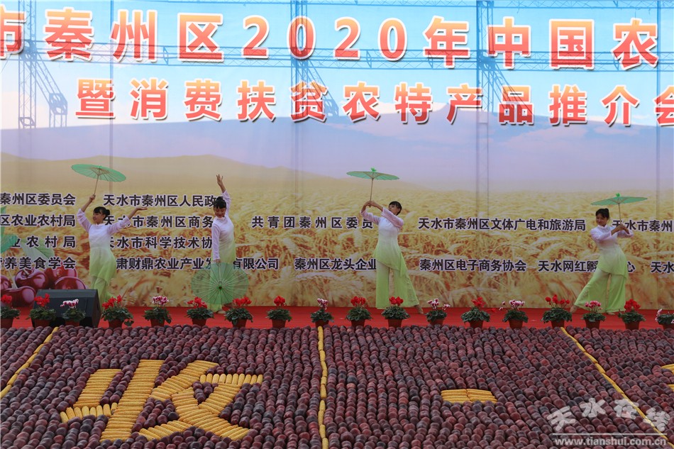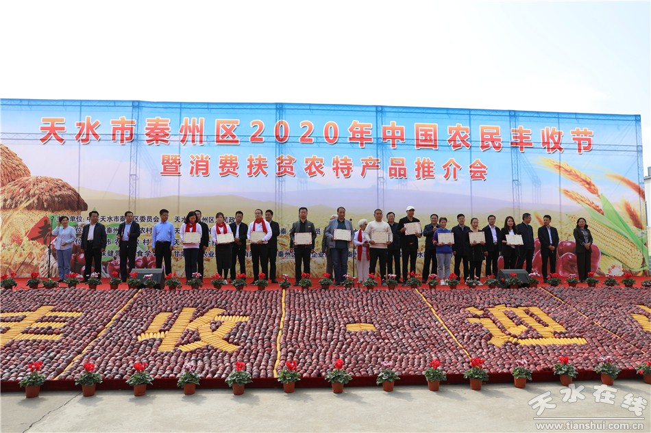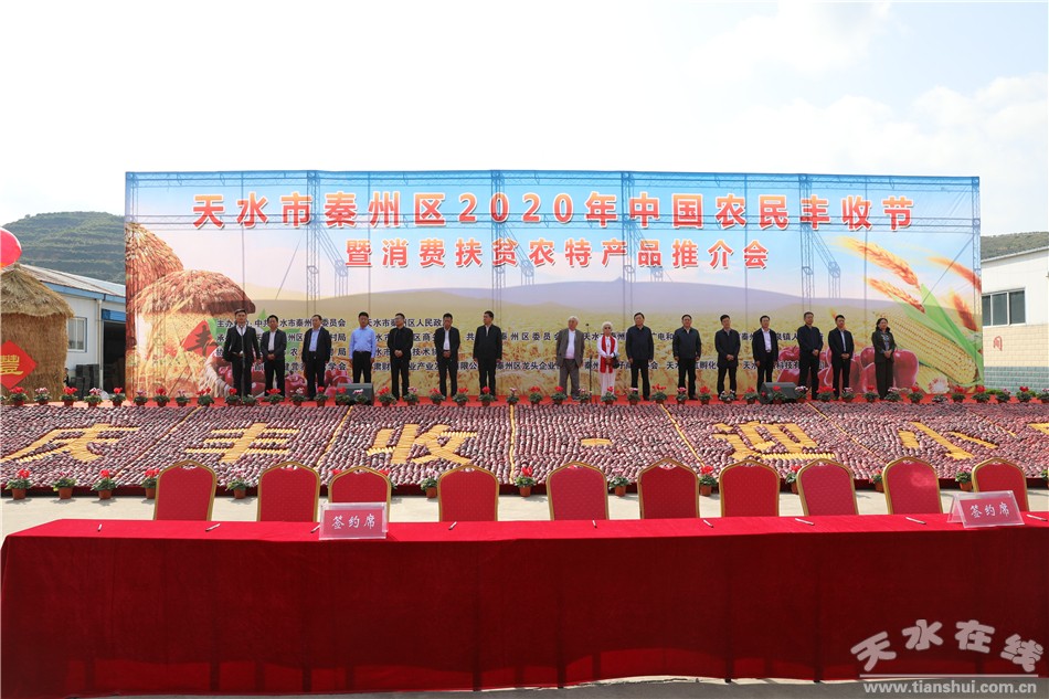 秦州区融媒体中心9月23日讯 (记者 张继明 杨文慧) 秋分时节,秦州大地瓜果飘香、六畜兴旺、硕果盈枝,全区农民欢天喜地庆丰年,意气奋发奔小康!9月22日,秦州区庆祝2020年中国农民丰收节暨消费扶贫农特产品推介活动正式启动。