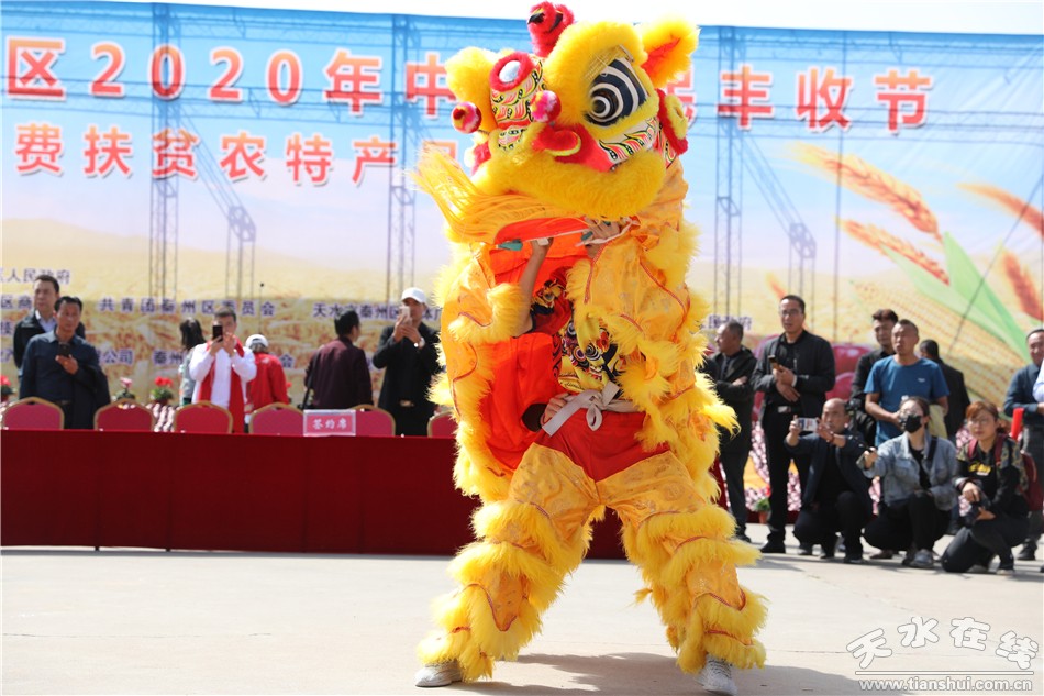 活动现场锣鼓喧天,欢声笑语,人声鼎沸,一头瑞狮送福全区农民朋友吉祥如意,拉开了以“庆丰收、迎小康”为主题的丰收节庆祝活动帷幕,与会专家领导在欢乐喜庆的节日氛围中观摩了秦州区特色农产品、手工艺品展销,并就加快我区农业产业发展、进一步提高特色农产品知名度和美誉度,不断拓宽销售渠道,促进农民增收致富进行了交流。