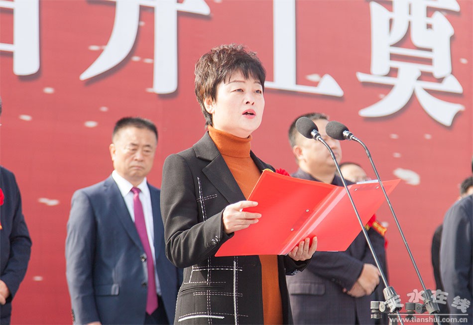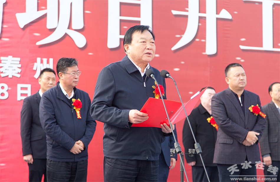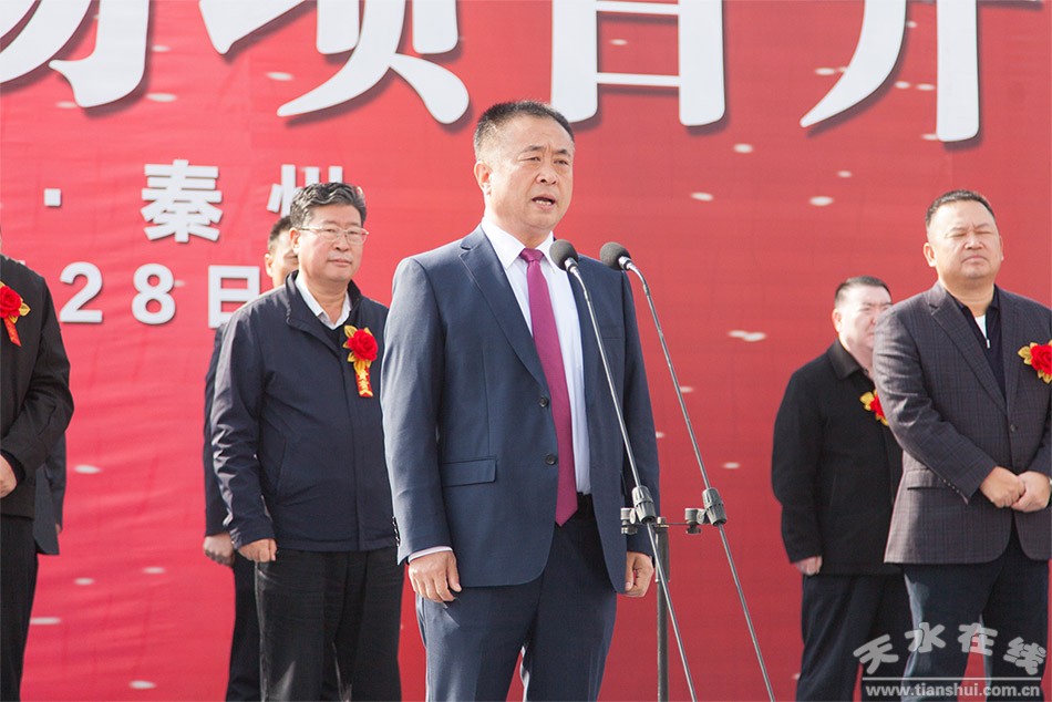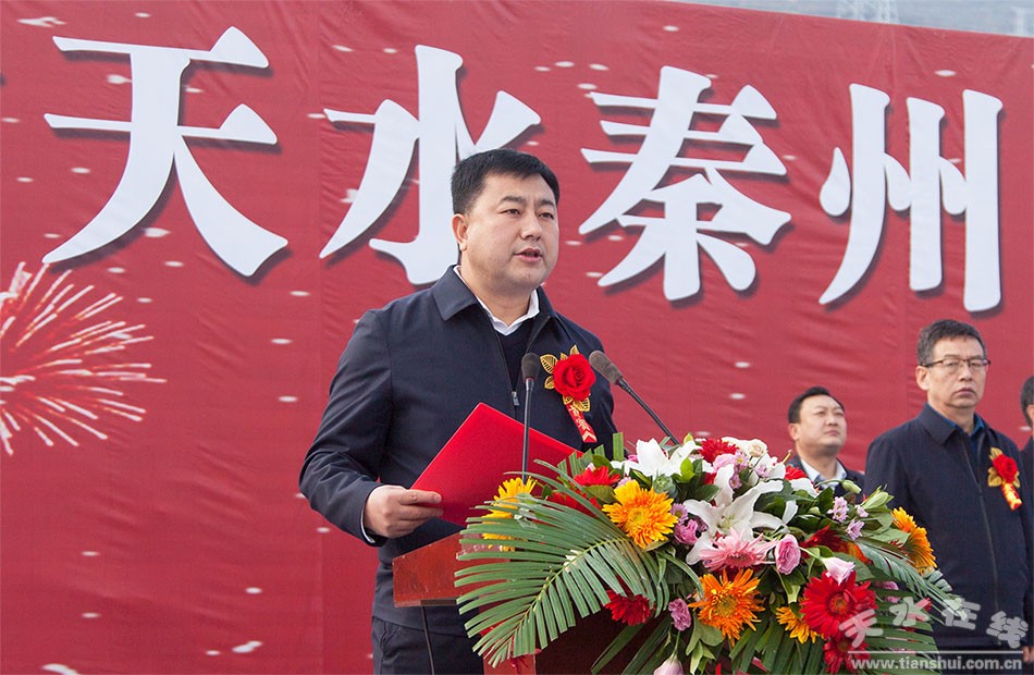 雷鸣在致辞中代表区四大组织对项目的开工奠基表示热烈祝贺。他说,在全国上下圆满完成“十三五”收官,在全国上下脱贫攻坚的关键时期,天水秦州江南市场项目的建设,对天水秦州助推脱贫攻坚、拉动经济增长,延伸产业链,具有重要意义。项目的实施,必将加速推进秦州新城建设,必将推动三产融合发展,必将成为辐射带动陇东南乃至西北地区商贸物流业发展的龙头。秦州区作为陇东南最大的交通枢纽和商品物资集散地,是我国北方最佳水果蔬菜生产基地之一,将紧盯打造陇东南经济社会发展带头区核心区目标,发挥区位优势,壮大特色产业,不断培育新型现代化的市场体系,让天水秦州乃至全省的农副产品走向全国、走向世界。希望全区上下敞开包容开放胸怀,搭建携手发展平台,提供优质高效服务,以一流的投资环境、一流的服务水平、一流的工作效率,保障项目顺利推进。希望项目建设单位高标准、高水平、高质量推进项目建设,争取早日建成、早日运营,为推动秦州经济社会发展作出积极贡献。