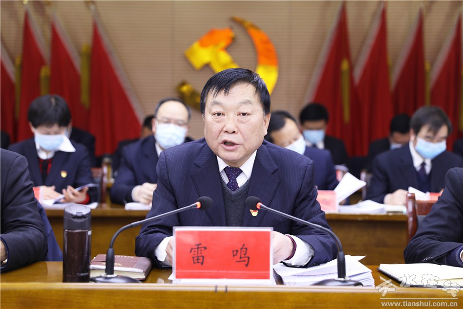 雷鸣强调,要以更深情怀增进民生福祉,增强群众幸福指数。要坚持人民至上、民生优先,从群众“急、难、愁、盼”处着手,持续深化医药卫生体制改革,全力做好重大疾病预防和公共卫生工作,加快“健康秦州”建设。优化教育资源配置,启动天水郡小学、解一小学玉润分校建设项目,化解城区“大班额”“择校热”问题。坚持把稳就业摆在突出位置,落实好援企、减负、稳岗、扩就业措施,做好重点群体就业工作。加快图书馆、博物馆建设,启动体育场全民健身中心项目,推动城乡公共文化全覆盖。全面落实兜底保障政策,扩大城镇职工养老保险、失业保险、工伤保险覆盖面。积极构建居家社区机构协调、医养康养结合的养老服务体系。深化“平安秦州”“法治秦州”建设,积极创建市域社会治理现代化试点城市。巩固扫黑除恶专项斗争成果,维护社会大局和谐稳定。强化安全风险常态化管控,确保安全生产形势持续稳定向好。