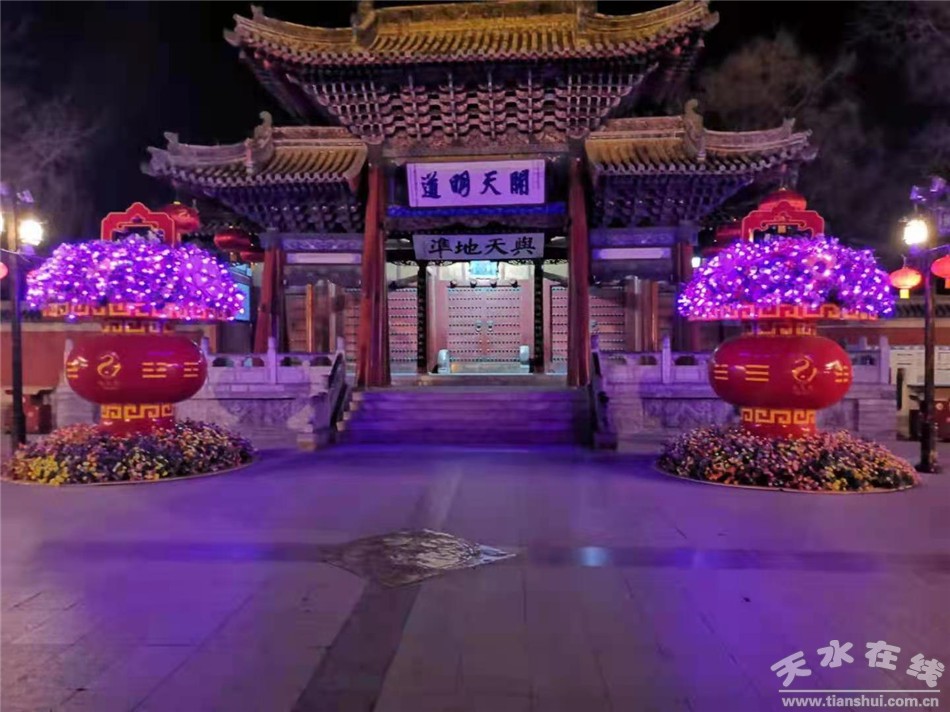 美化亮化工程按照各个城市公共区域不同的特色开展,在伏羲城广场,重点围绕区域景观,以建筑环境为背景,在仿古长廊、街道两旁悬挂大灯笼100个,小灯笼50个,陈设4米高的彩灯花篮2个,6米高的彩灯花篮2个,为市民呈现流光溢彩、华美纷呈的视觉效果。在中华东西路步行街和龙城广场,主干道路两旁和广场周边全部挂起336个灯笼,悬挂1.5米的灯笼14个,向市民表达着新年美好的祝福,公共区域内处处洋溢着浓浓的年味。在天水湖和藉河风情线沿线,维修更换庭院灯、投光灯、高低灯、地灯、台阶灯、线条灯等各类照明等425盏,安装网片亮化灯300平米,LED灯带253米,确保湖区及风情线亮灯率达100%,全方位打造秩序更好、环境更美、形象更佳的天水市城市名片。在成纪儿童公园维修高杆灯、草坪灯、花园投光灯、游乐场地灯等各类路灯100余盏,安装灯笼102套,营造整洁优美、和谐文明、充满生机的公园形象。