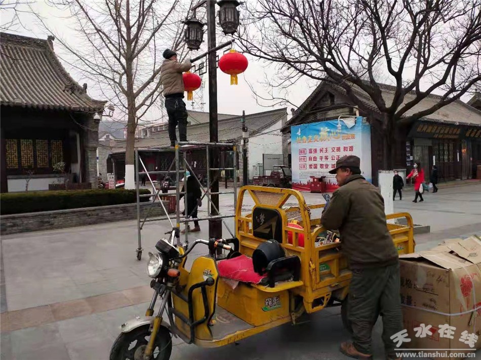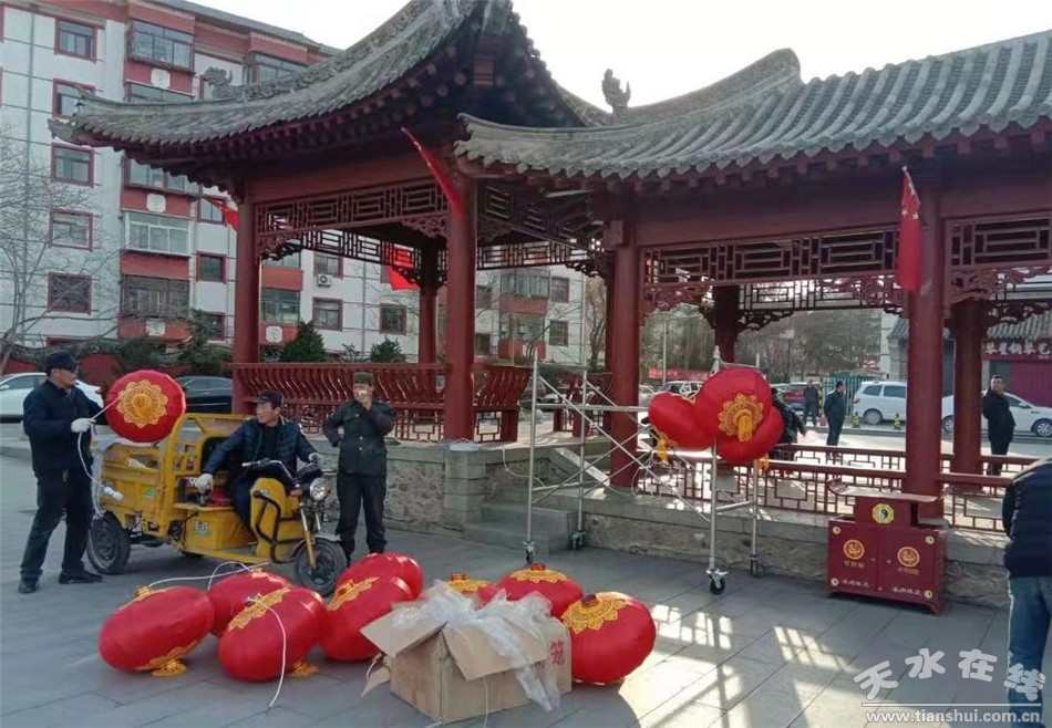 秦州区融媒体中心2月8日讯 为营造祥和喜庆的新春氛围,秦州区城乡环卫治理中心早谋划、早动手,从各个城市重点区域的美化亮化入手,通过灯组、树灯、灯笼等的布置,扮靓城市美景,增添喜庆祥和的节日氛围。