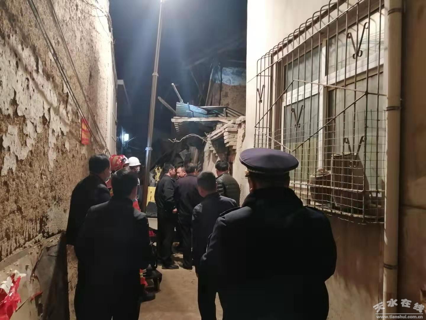 3月22日下午,秦州区解放路务农巷一处民房坍塌,秦州区紧急开展救援行动,区委常委、常委副区长赵虎生,区委常委、政法委书记何炜巍现场指导救援工作。