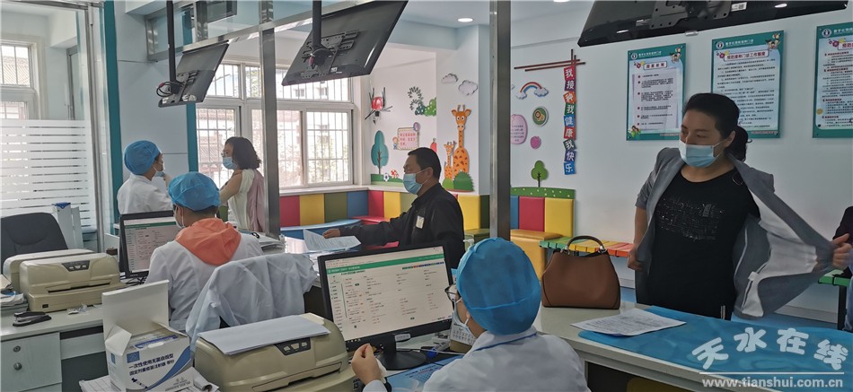 在大城奋斗社区卫生服务站、西关街道社区卫生服务中心、天水四O七医院、天水市中医院等疫苗接种点,登记处多名工作人员对前来接种的群众进行登记、测温、测量血压等程序并询问其身体状况,对不符合接种条件的市民,告知其原因,对符合接种条件的市民。接种技术人员经认真核对信息后,扫描疫苗条码,规范进行接种。