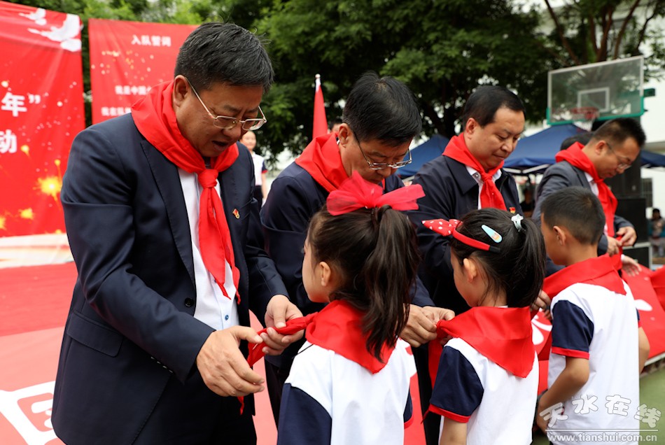 秦州区融媒体中心6月1日讯(记者 杨旭 邵千 李超 赵雅琪)今天是第71个六一国际儿童节,上午,秦州区在新华门小学举行“红领巾心向党 庆祝中国共产党成立100周年”少先队员集中入队仪式暨庆“六一”主题队日活动。市委常委、区委书记王东红,区人大常委会主任魏胜奎,区政协主席毛更生,区领导宋丕林、裴贵军、张奎喜、汪晓娟、师振纲、兰雪艳、郭金霞等与孩子们欢聚一堂,共同庆祝节日。