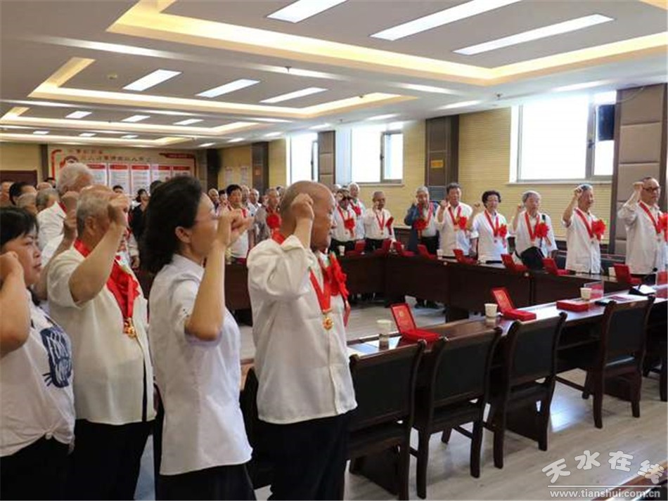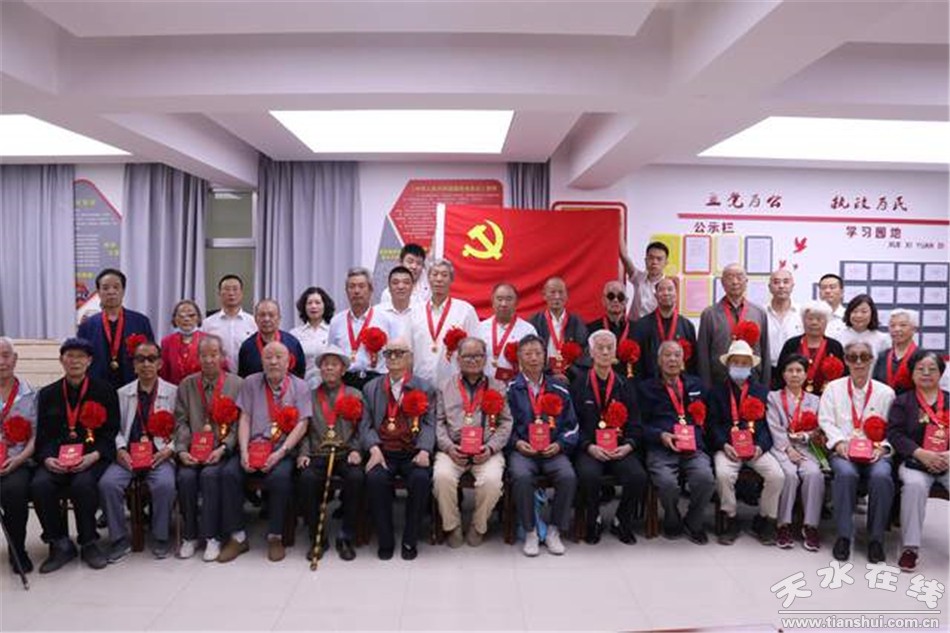6月22日,天水郡街道举行“光荣在党50年”纪念章颁发仪式,向42名老党员颁发了纪念章。现场,全体党员面对党旗,共同重温入党誓词。街道广大党员干部纷纷表示,要以“光荣在党50年”等先进典型、身边榜样为标杆,学习传承老党员忠诚担当的政治品格,锐意进取,砥砺奋进,以优异的成绩向党的百年华诞献礼。(编辑 丁红妮)