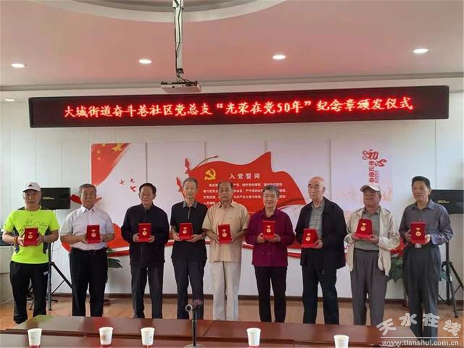 秦州区融媒体中心6月22日讯 一百年征程浩荡,五十载初心如磐。在建党100周年来临之际,近日,秦州区各镇、街道举行“光荣在党50年”纪念章颁发仪式。