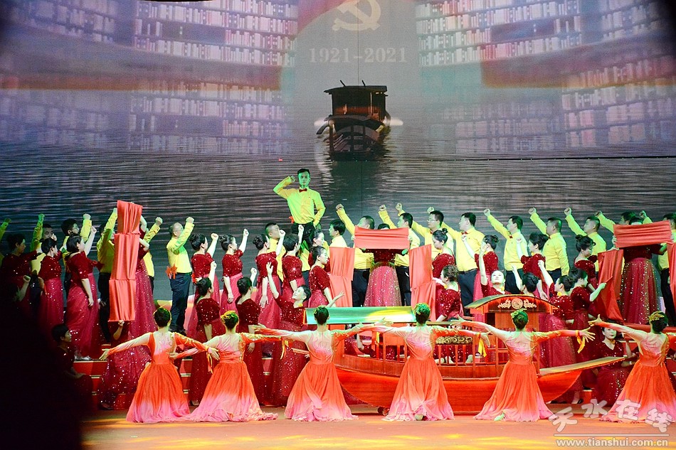 ▲6月29日晚,由秦州区委、区政府主办、以“奋斗百年路 启航新征程”为主题的秦州区庆祝中国共产党成立100周年文艺晚会在秦州大剧院激情上演。