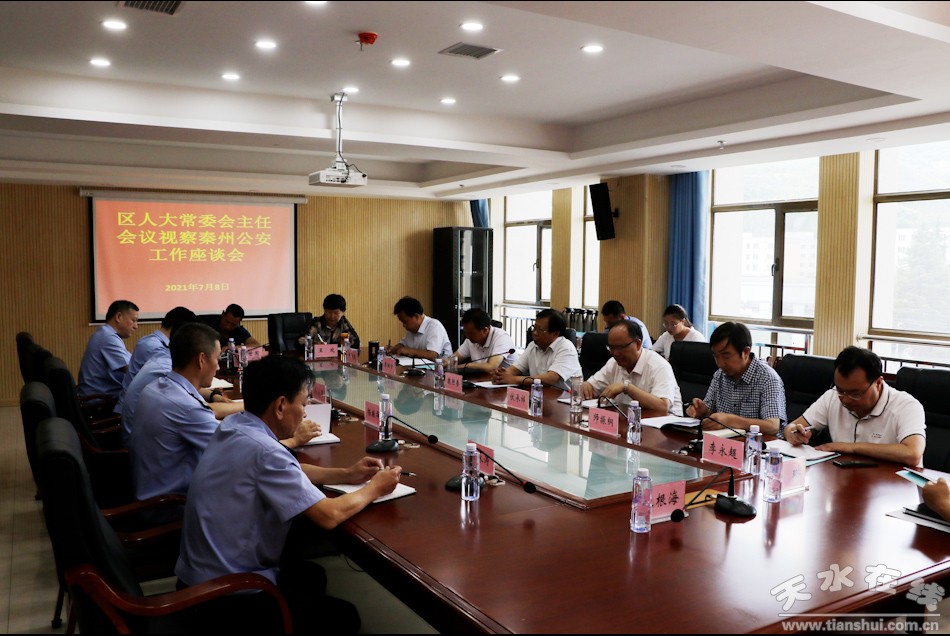 秦州区融媒体中心7月8日讯(记者 高世飞)7月8日,秦州区人大常委会主任魏胜奎,区人大常委会副主任伏承祥、李映泉、师振纲、刘书文、李永超、王欢一行组成视察组,对区公安工作进行视察。区政府副区长马小军陪同视察。