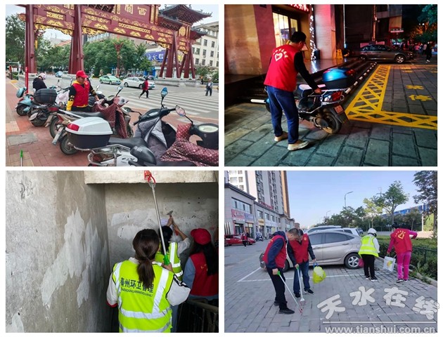 化身环境卫生“整治员”,打造城市颜值新风貌。由环境卫生整治员、党员干部和青年志愿者组建的志愿服务队,重点对龙城广场、中华东西路步行街等城市重点公共区域和解放路、官墙里等包抓区域进行彻底整治,针对破损路面及设施进行及时维修更换,油饰亮化绿化带护栏等城市家具800余平方米,清理附着在公益广告、小区墙体、沿街变电箱表面的乱喷、乱写、乱贴小广告1000余处,捡拾绿化带内烟头2000余个,切实发挥网格化管理成效,督促商铺门店严格落实“门前四包”责任制,使城市面貌焕然一新。组织志愿者、环卫管理员深入三无小区、背街小巷对堆积的陈年垃圾、杂草、小区楼道墙面进行彻底清理,清理垃圾500吨,全力推进城市环境高质量、市容环境高颜值。