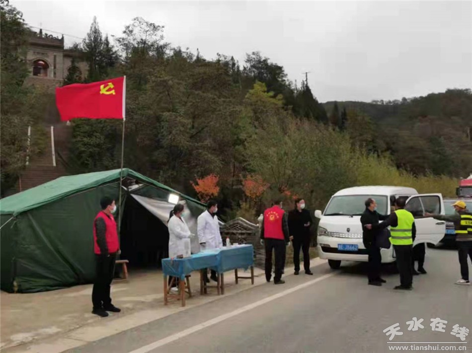 秦州区融媒体中心10月24日讯 面对新的疫情形势,秦州区牡丹镇党委快速行动,精准施策,全面防控。全镇党组织充分发挥战斗堡垒作用,广大党员充分发挥先锋模范作用,落实落细各项防控工作措施,用实际行动践行着初心使命,党旗在牡丹镇疫情防控一线高高飘扬。(供稿 牡丹镇/编辑 靳艳艳 审核 辛智翔)