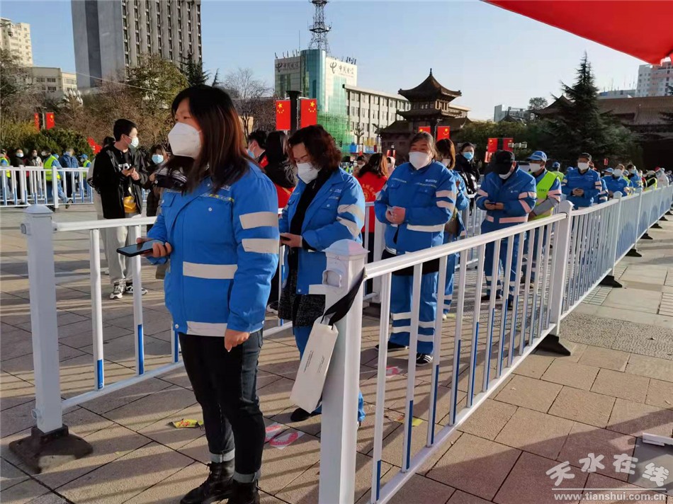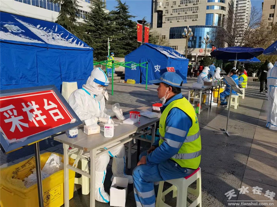 秦州区融媒体中心11月7日讯 为进一步做好疫情防控工作,切实保障一线环卫工人身体健康,最大限度减小疫情传播风险。11月7日上午,秦州区在龙城广场、伏羲城步行街、人民公园等地设置核酸检测采样点为全区环卫工人进行核酸检测采样工作。检测过程中,医护人员按顺序分批次进行核酸采样,并严格落实人员信息登记,有效避免了人员聚集,确保核酸检测现场秩序井然。本次核酸检测,既体现了对一线防控人员的关爱,又可以做到及早筛查,排除隐患,营造一个更安全的公共卫生环境。