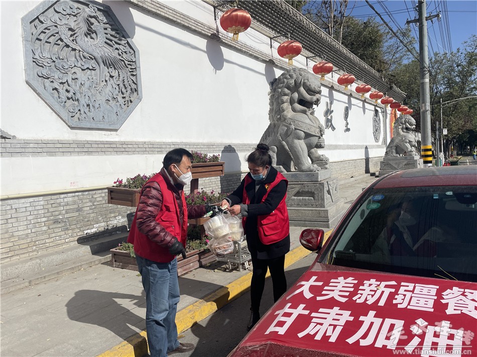 秦州区融媒体中心11月9日讯 疫情袭来,有这么一位开餐饮点的小伙不顾严寒,整天穿梭于秦州的小区卡口、交通值守点、新闻媒体单位等抗疫一线,只为疫情防控一线工作人员、志愿者免费送上可口的饭菜,让他们在疫情防控点能吃上热乎饭,尝到“家的味道”。他就是退役军人尹斌,2020年4月退伍后,他回到了甘肃省天水市,在秦州区成纪大道开了一家名叫大美新疆餐厅。16年的军旅生涯练就了他敢作敢为的处事风格,雷厉风行的办事作风,助人为乐的优秀品质。