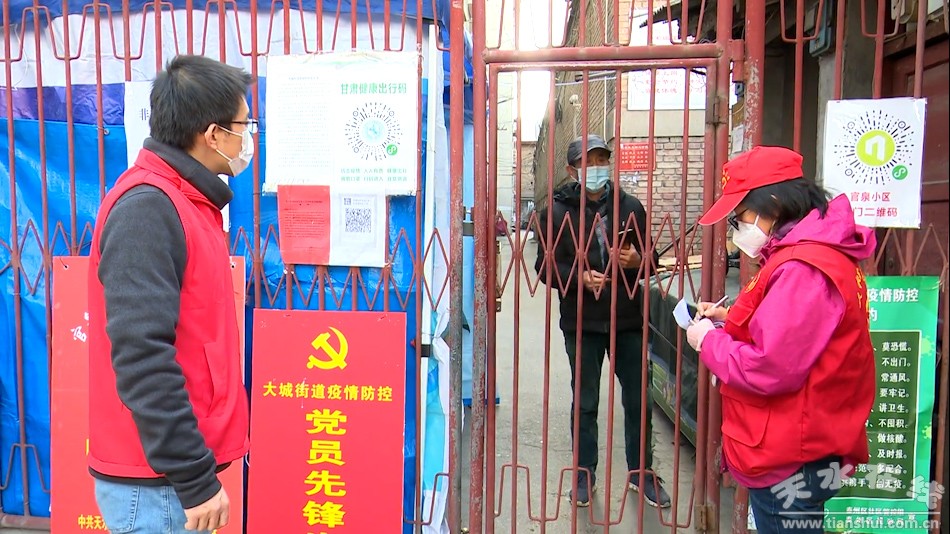 秦州区融媒体中心11月17日讯(记者 李欣 高世飞)社区防控是第一道防线。能否把社区防住、守牢,事关人民群众生命安全、事关疫情防控大局。在秦州区疫情防控关键期,大城街道光明巷社区干部职工舍小家顾大家,紧紧守护着辖区1780户3920人的生命健康和安全,践行着社区党员干部的责任担当和使命。