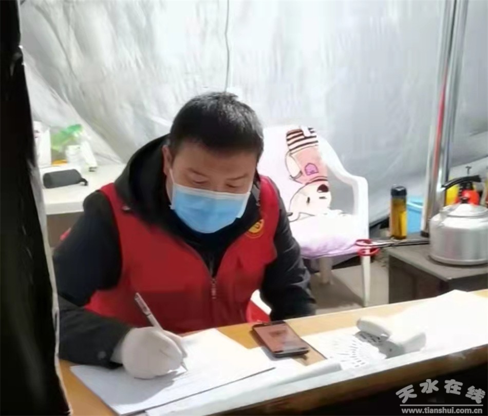 一切来的是那么突然,一场悄无声息蔓延的新型冠状病毒疫情,让整个城市陷入慌乱之中。各单位、小区都对出入人员进行升级管控,杨贤芳所在的单位秦州区财政局,由于前来办事人员多,单位院子里还有天水市中医院几个科室,人员出入频繁,疫情管控难度大。10月末,正好是他负责单位疫情防控的时间,按照疫情防控要求,他穿上红马甲,组织单位值班同事,对办事人员和中医院工作人员认真落实健康码、出行码、登记码和单位出入证“三码一证”查验,并测量体温,规范出入管理。同时对来单位领取文件,报送资料的办事人员实行无接触转送,统一登记后,由值班人员转送,对中医院所需物资由专人统一配送,使单位出入人员由管控之前的几百人次骤降为几十人次,切实减少人员接触频次。
