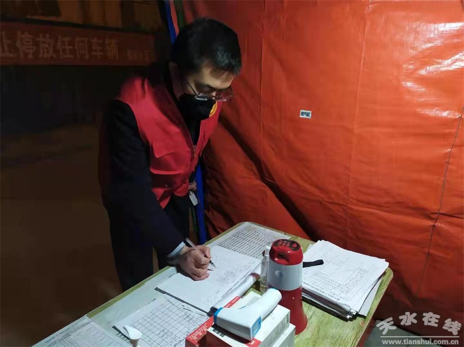 秦州区融媒体中心11月20日讯 作为一名中共党员和志愿者,秦州区教育局干部柳利军同志坚决服从组织安排,恪尽职守,身先士卒,担当尽责,坚持防疫值守、抗疫宣传、线上办公“三线作战”,于值守点、办公室、家庭“三点一线”之间日夜奔波,用自己的实际行动,生动诠释了一名党员干部的初心和使命。