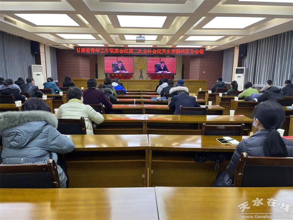 12月10日上午,甘肃省青年工作联席会议第三次全体会议视频会在兰召开,会议由甘肃省委副书记孙伟主持。秦州区副区长景怡,区青年工作联席会议办公室主任王晓芸以及联席会议各成员单位共计40余人在我区分会场收听收看会议。会议传达了国家中长期青年发展规划实施工作部际联席会议第三次全体会议精神,听取有关方面工作汇报,总结今年工作,研究部署2022年重点工作。孙伟指出,近年来,我省青年工作取得明显成效,青年的生力军、突击队作用进一步发挥。他强调,要提高政治站位,把青年发展和青年工作作为根本大计,坚持用习近平新时代中国特色社会主义思想教育人,用党的理想信念凝聚人,用社会主义核心价值观培育人,用中华民族伟大复兴历史使命激励人,深入开展“四史”教育,深刻领悟“两个确立”的决定性意义,培养造就大批堪当时代重任的接班人。要把握青年成长新特点新规律,紧盯重点,采取务实举措,切实为广大青年办实事、解难题,不断提升工作成效。要突出青年工作重点,狠抓落实,持续深化思想政治引领,深入落实优先发展战略,切实维护发展权益,不断提升青年工作整体水平。要加强党对青年工作的领导,逐步完善“党委领导、政府主责、共青团协调、各部门齐抓共管”的工作格局,团结引领广大青年矢志践行“请党放心、强国有我”的青春誓言,以优异成绩迎接党的二十大胜利召开。