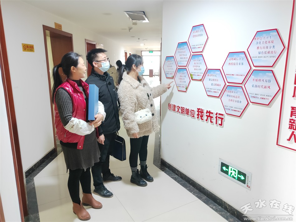 为加快推进节约型机关创建工作,12月13日至16日,秦州区先后对区教育局、区农业农村局、区财政局、区党校、区残联等16家单位进行现场检查和指导。为提高创建质量,考核验收组严格审核把关,通过采取查阅材料、听取汇报、座谈交流、实地查看等方式,从制度体系、绿色行动、绿色办公、垃圾分类、宣传教育等方面对各创建单位进行了全方位、多角度的检查考评,针对存在的问题提出整改意见和建议,确保创建工作扎实开展,不走过场。(编辑 赵雅琪)
