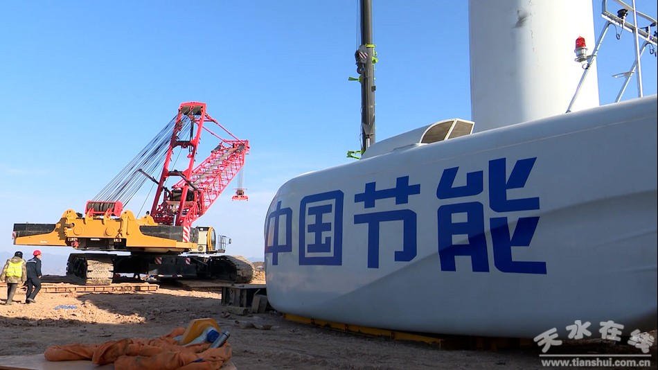 中节能秦州华岐25兆瓦分散式风电项目安全总监刘修化说:“我们中节能项目是在秦州区投资的第一个风电场,总投资大概是1.8亿,安装8台3.3兆瓦的运达风机。从5月开工到现在,基本上已经吊装完成7台风机,目前还有一台正在吊装。”