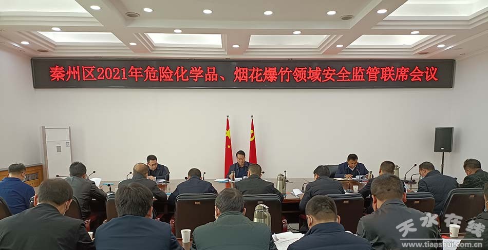 秦州区融媒体中心12月23日讯(记者 刘利娟) 12月22日,秦州区召开2021年危险化学品、烟花爆竹领域安全监管联席会议,区委常委、常务副区长张维有出席会议并讲话。