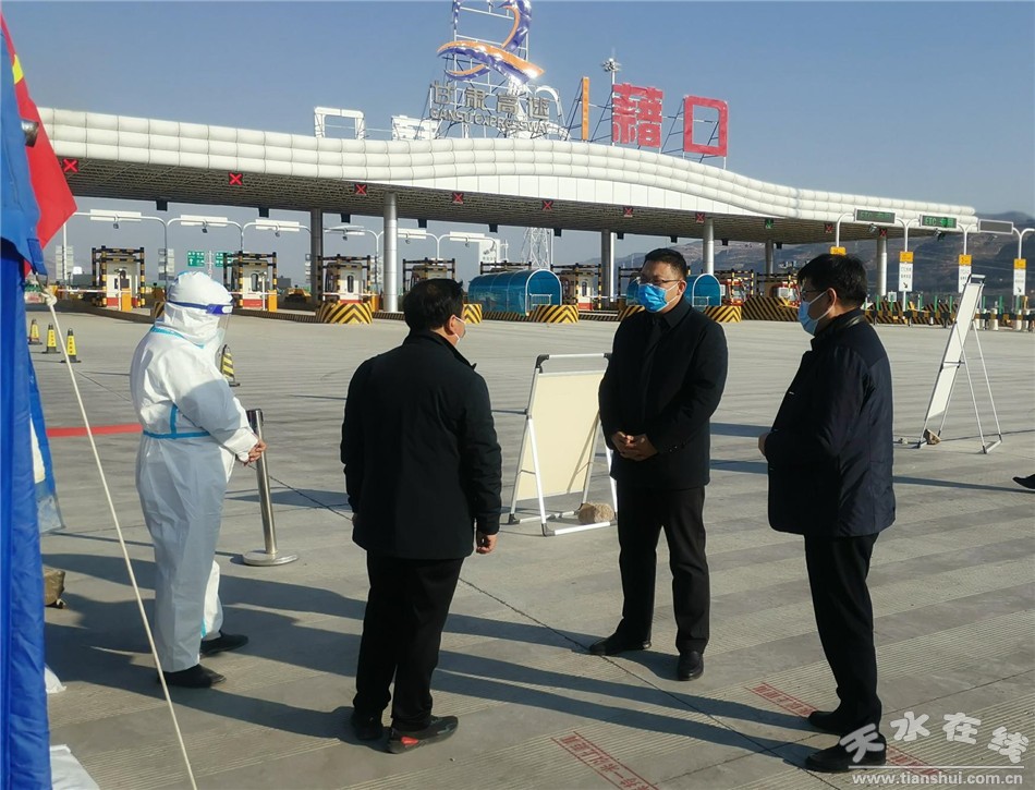 秦州区融媒体中心12月23日讯 12月22下午,秦州区领何炜巍、马小军分别带领相关部门负责同志对全区6个交通检疫卡口各项防疫措施落实情况进行了督导检查。