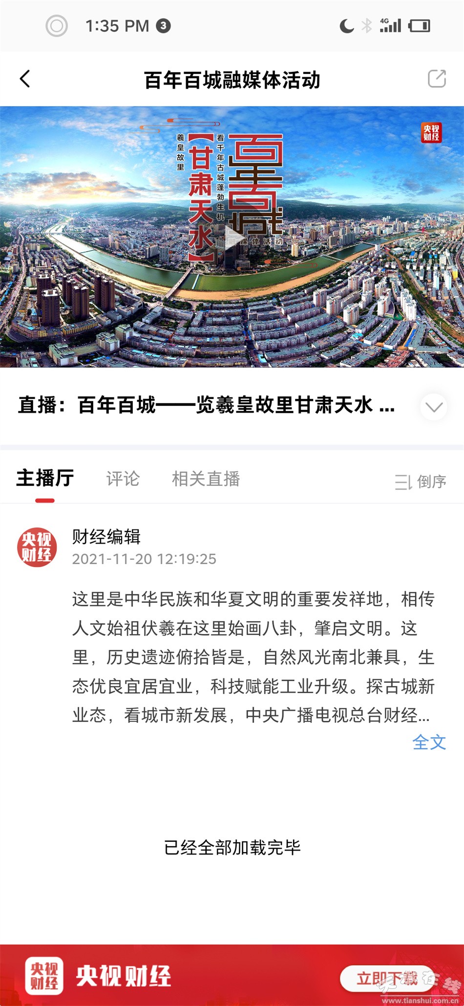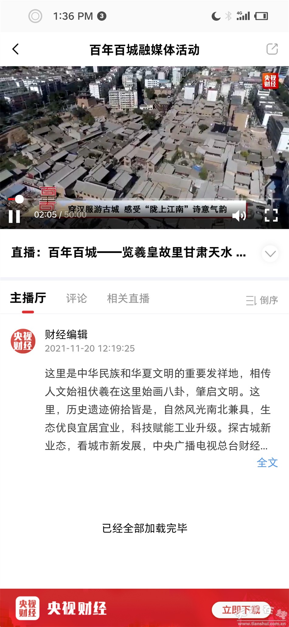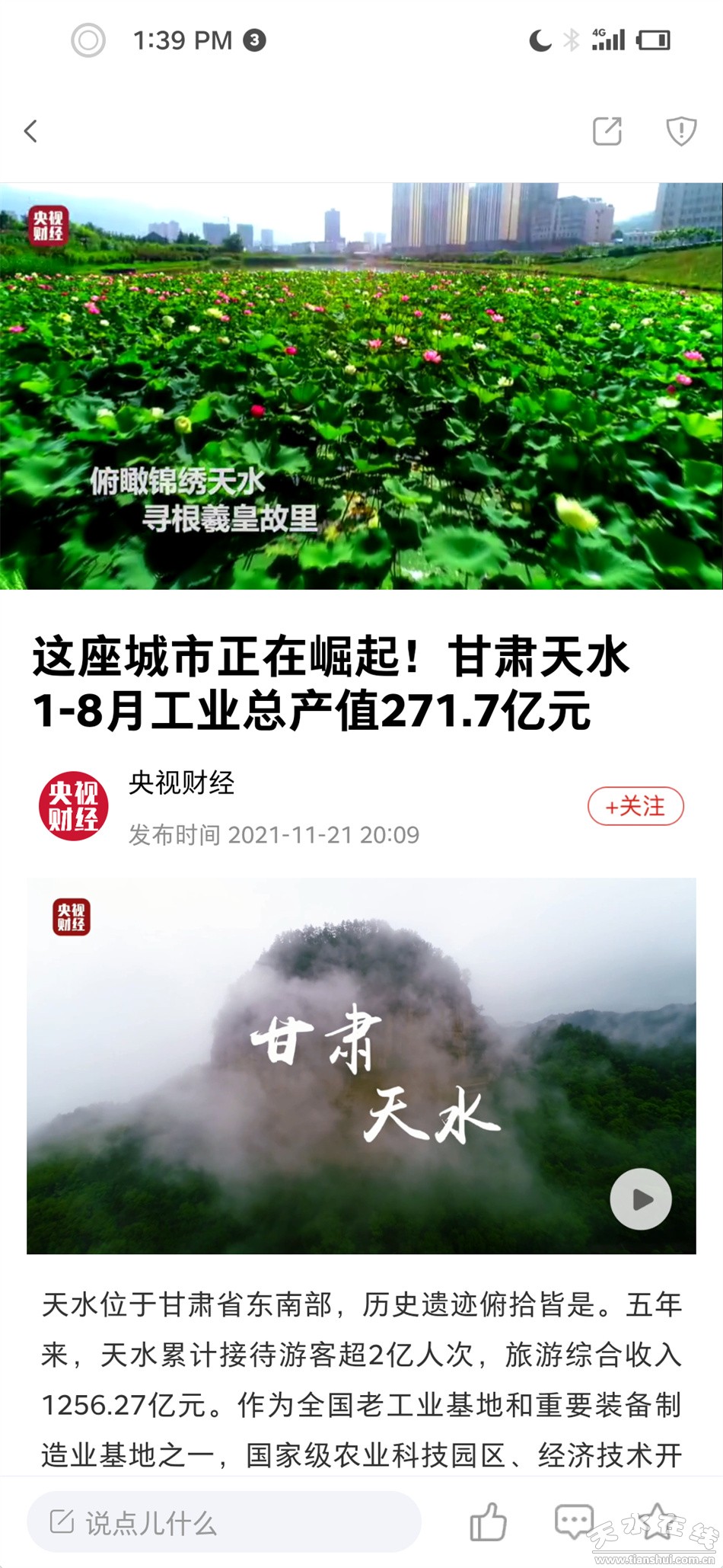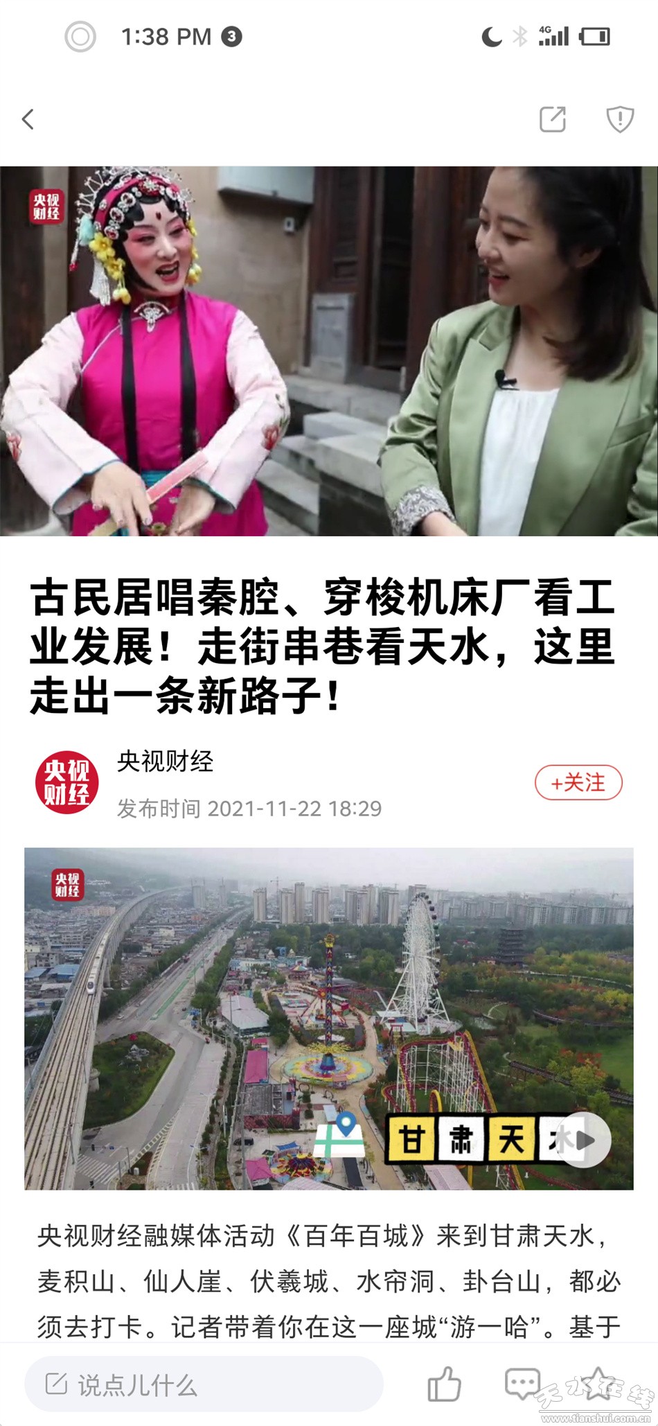目前“为我的城市点赞”投票已经进入最后冲刺。欢迎大家打开央视财经APP“为我的城市点赞”页面搜索“天水”参与活动,为宣传天水、推介天水聚力。