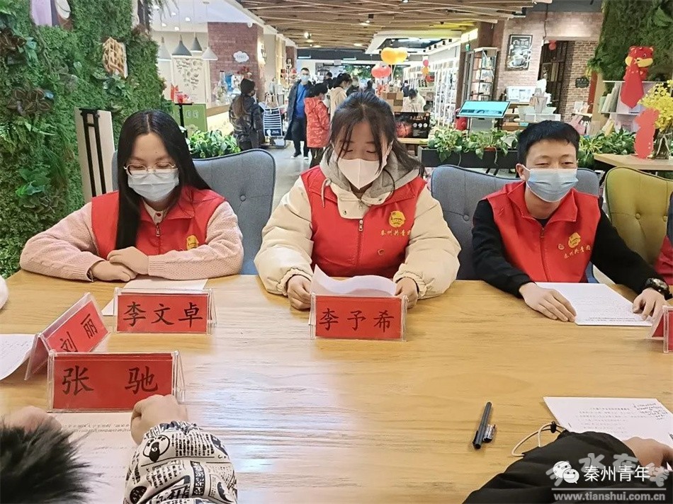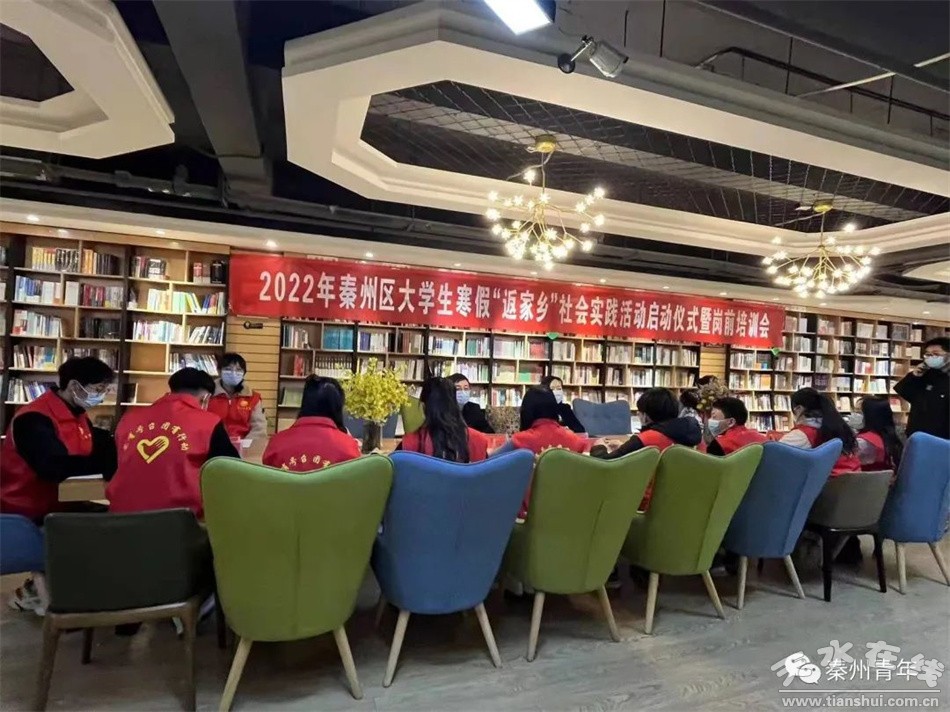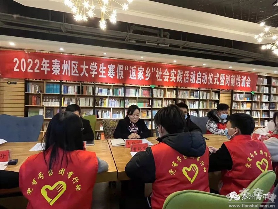 为进一步加强“返家乡”大学生社会实践的日常管理服务工作,丰富他们的工作实践经验,提升志愿服务水平。1月18日下午,共青团秦州区委在天一书店举办了2022年秦州区大学生“返家乡”社会实践活动启动仪式。活动中,传达学习了习近平总书记2022年新年贺词和党的十九届六中全会精神,学生代表围绕学习党的十九届六中全会精神做了交流发言,全体大学生积极参与了学习党的十九届六中全会精神知识竞赛,活动取得了良好的效果。