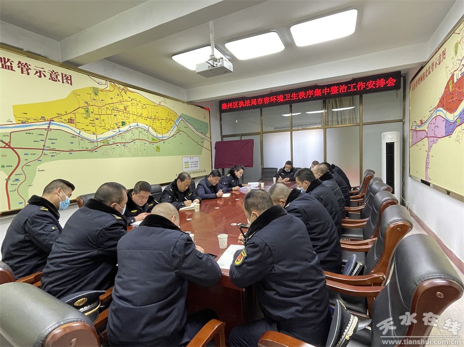 日前,秦州区执法局召开市容环境卫生秩序集中整治工作安排会。会议传达学习了区政府市容环境卫生秩序集中整治实施方案,并对开展市容环境秩序集中整治进行了全面的安排部署。