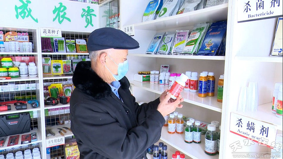 在天水郡一家农资配送中心,太京镇年集村村民王满财一大早就和邻居前来选购今年春耕所需的农药等农资用品。