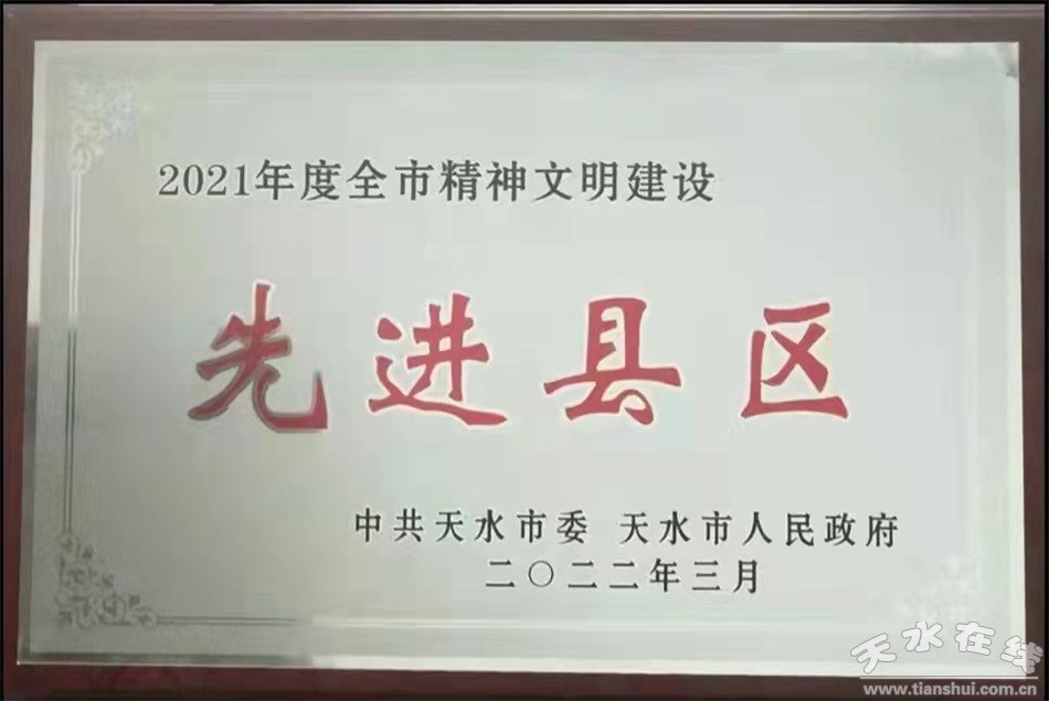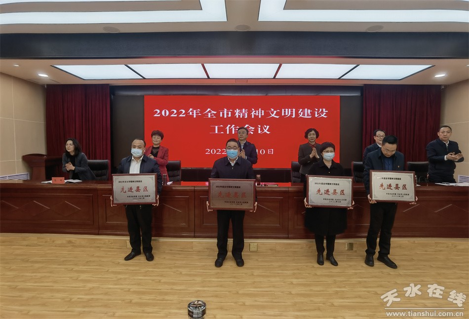 秦州区融媒体中心3月10日讯 3月10日,天水市精神文明建设工作会议召开。大会对2021年度精神文明建设工作突出的县区、第二十四批市级精神文明建设先进集体、第四届市级文明校园和先进工作者进行了表彰,其中秦州区荣获“2021年度全市精神文明建设先进县区”,秦州区城市管理综合执法局等8家单位荣获“市级文明单位”称号;秦州区玉泉镇荣获“市级文明镇”称号;秦州区中梁镇座崖村等4个村荣获“市级文明村”称号;秦州区天水郡街道藉水北路社区荣获“市级文明社区”称号;天水伏羲中学等5所学校荣获“市级文明校园”称号;方晓岗等3名同志荣获市级精神文明建设先进个人。