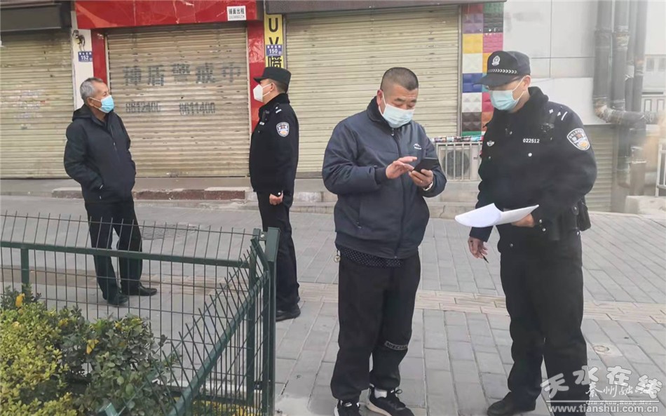 秦州区融媒体中心3月14日讯 连日来,秦州区对重点区域开展核酸检测。北关派出所全体民辅警提前到达核酸检测点现场,和社区工作人员一起对检测点的警戒带、指示牌和采样流程等场地布置安排进行最后的检查,确保万无一失。