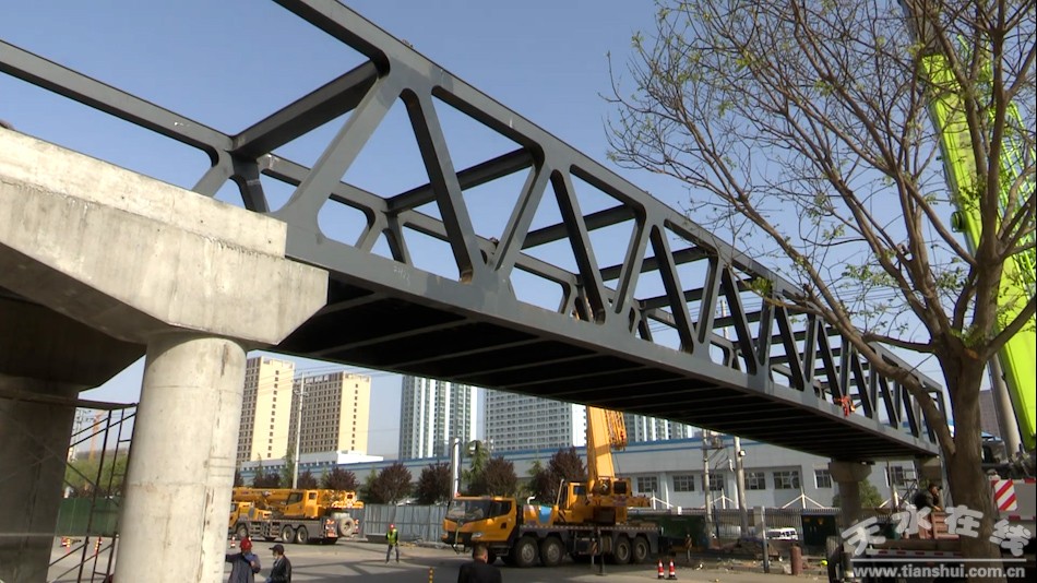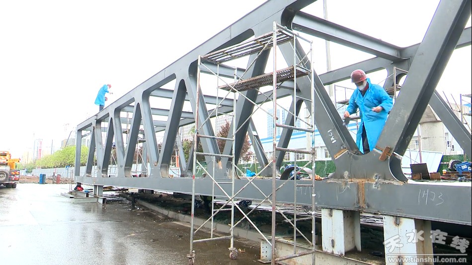 据了解,赤峪路华天电子产业园片区人行天桥全长45米,高4米,宽5米,主体结构采用钢结构桁架,桥梁设计呈“工”形,南北向布置,北侧为华天电子产业园,南侧为天水新天坛创伤骨科医院、大唐人家等医疗机构和居民居住区,建成后将为周边群众出行安全提供保障,缓解区域交通压力。