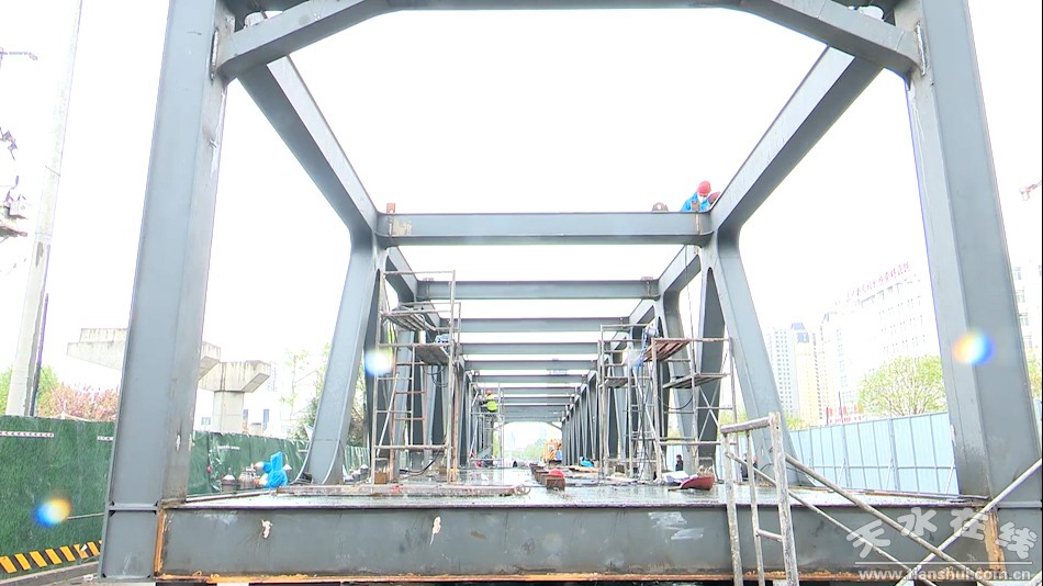 在项目建设现场,记者看到施工人员正在进行桥面焊接作业。据了解,工程目前已经完成了土建部分的全部作业,钢结构框架也已基本拼装完成。