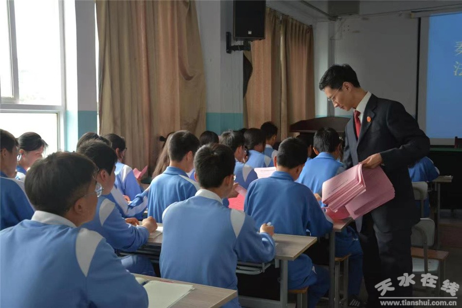 秦州区融媒体中心5月31日讯 为进一步加强青少年的法治意识,增强青少年自我保护能力,减少青少年犯罪及侵害案件的发生。近日,秦州区人民法院在秦州区藉口中学,为在校学生开展了“学法守法 健康成长”的主题法治课。