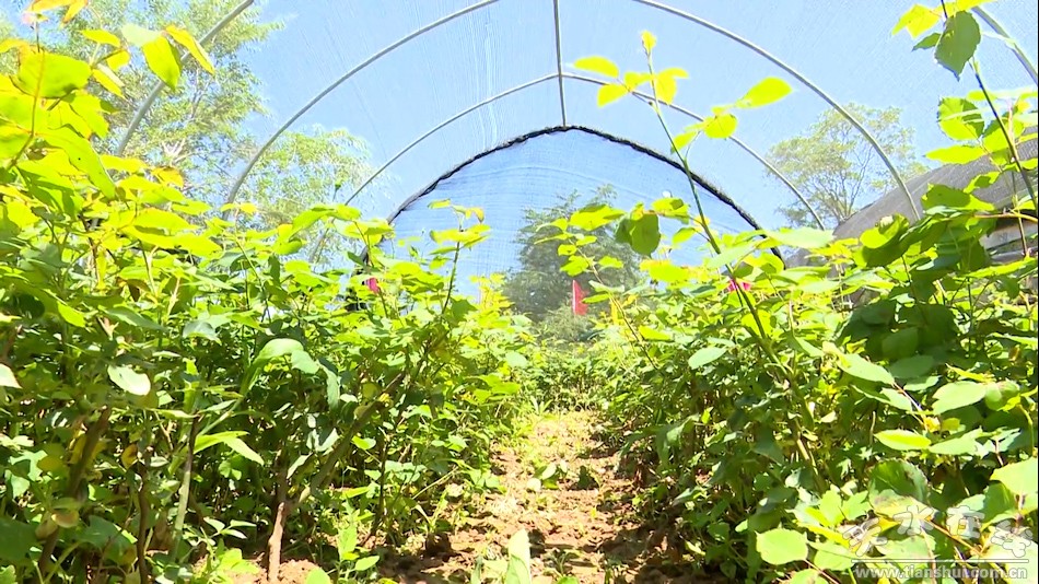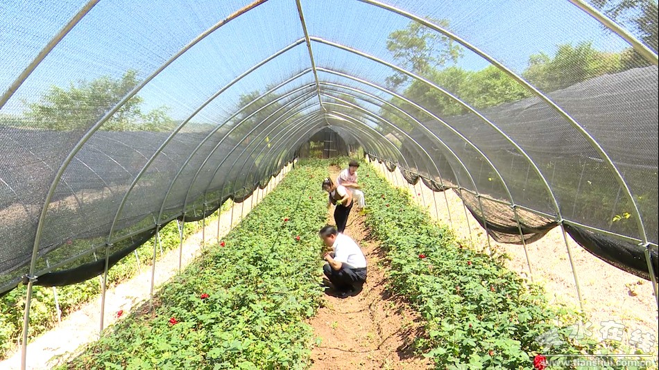 仲夏时节,秦岭镇董集寨村群山苍郁叠翠,山坳上几座大棚掩映在绿林中,这是董集寨村今年新建成的月季花卉育苗基地。大棚内,管理人员正在对花卉进行拔草、浇水等管养工作。