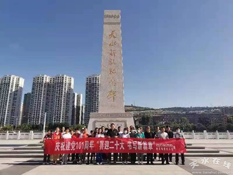 主题活动参观了天水市解放广场,在天水解放纪念碑前重温了入党誓词,邀请老党员为大家深情讲解了抗日战争故事,详述了1949年8月3日,第一兵团第七军军长彭绍辉率部解放秦州的故事,回忆了往昔峥嵘岁月,接受了革命传统教育。