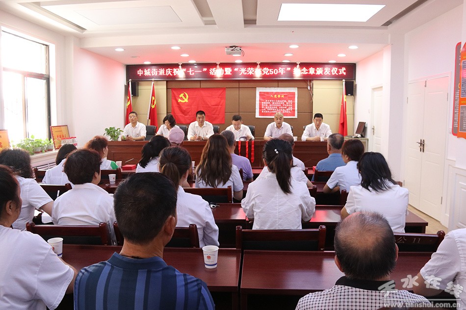 6月27日,中城街道举行庆“七一”暨“光荣在党50年”纪念章颁发仪式。颁发仪式上,向党龄达到50周年的老党员颁发了“光荣在党50年”纪念章,向老党员们致以热烈的祝贺和崇高的敬意。老党员们表示,将继续发挥余热,一如既往讲好党的故事,传播党的声音,不断在新征程的起点上创造出新的业绩。