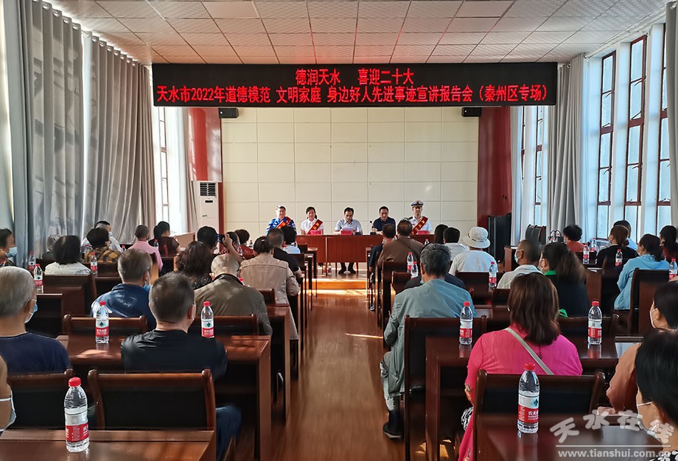 秦州区融媒体中心6月29日讯 (记者 崔磊)6月28日,市文明办联合秦州区委宣传部、区文明办举办“德润天水 喜迎二十大”天水市2022年道德模范、文明家庭、身边好人先进事迹宣讲报告会秦州专场。