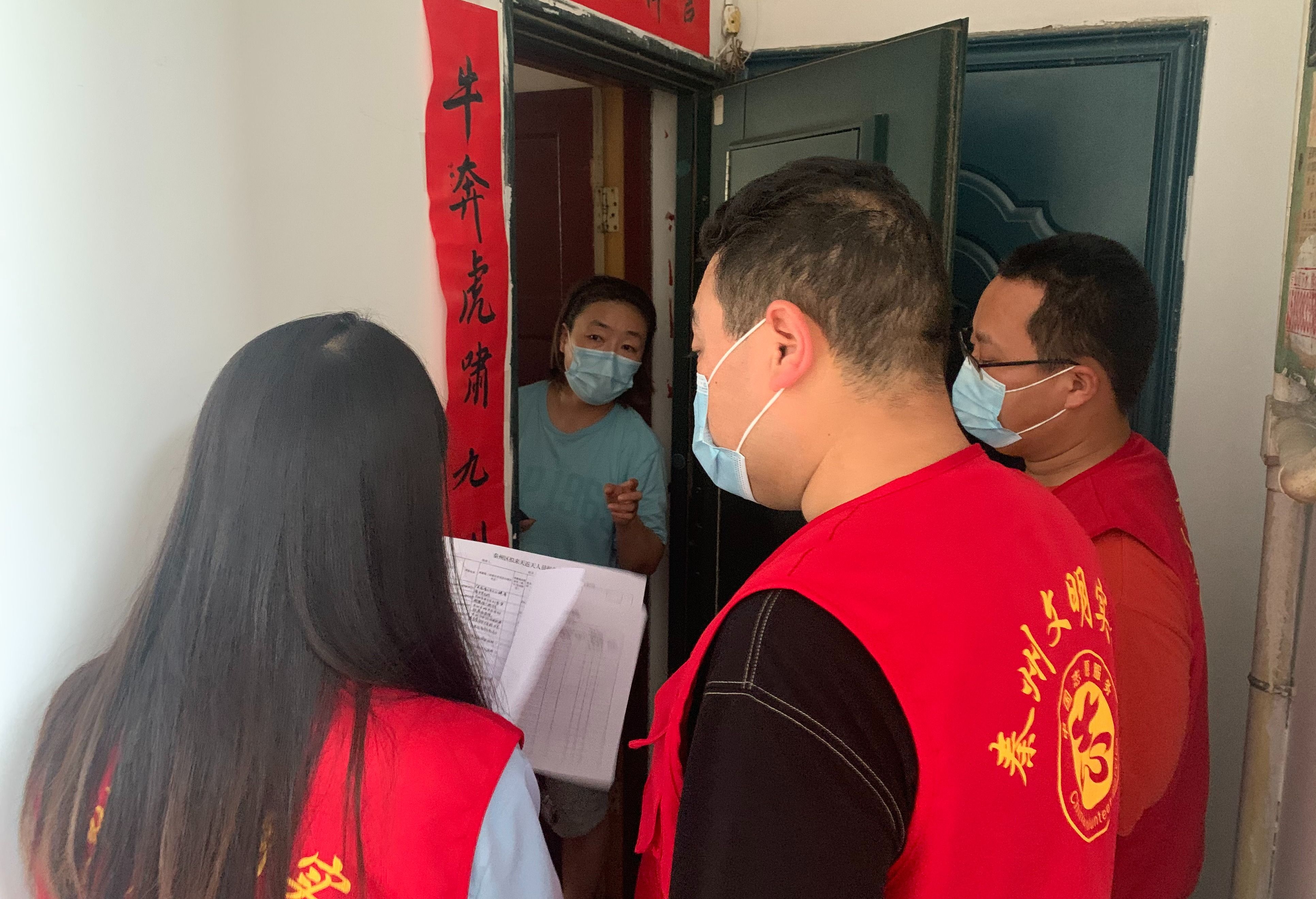 秦州区融媒体中心7月14日讯 居民小区是疫情防控的“神经末梢”。为精准掌握来秦返秦人员信息,确保重点人员排查管控到位,秦州区组织党员干部下沉一线,在街道社区的统一安排下开展“敲门行动”,分楼栋分单元逐户上门,通过询问近期是否有来秦返秦人员、查看行程码、健康码等方式,对外来人员进行严密排查,激活基层“神经末梢”,筑牢疫情“防控网格”,确保不漏一户、不少一人,摸清辖区住户信息底数,全力织密织牢疫情防控网。