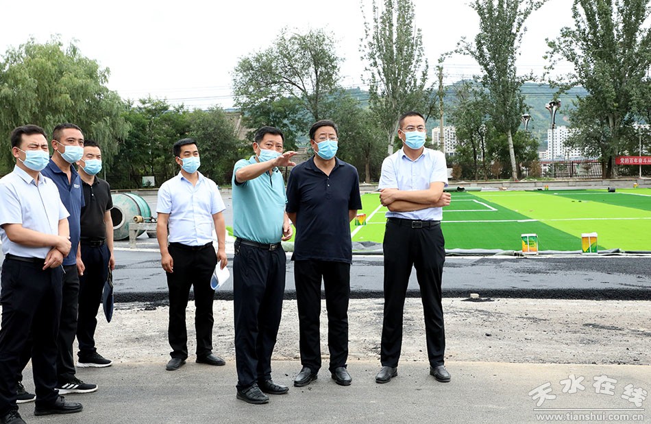 在天水市第三中学初中部,王东红走进教学楼、运动场,认真察看校舍安全、学校环境、运动场改造提升等情况。他强调,学校建设是一项重大民生工程,各有关部门要进一步增强责任感和紧迫感,提高政治站位和思想认识,在保证质量和安全的前提下,千方百计加快施工进度,确保改造项目如期完成、一步到位。要以运动场改造为契机,同步实施校园“硬化、净化、绿化、亮化、美化”提升工程,为师生创建优美的工作、学习和生活环境,发挥好环境育人的作用。要认真落实“双减”政策,开足开好体育等课程,探索形式丰富、行之有效的教学方式方法,让青少年在强健体魄、陶冶情操中实现健康全面成长。