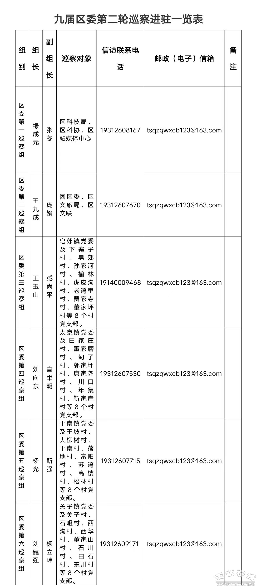 根据市委巡察上下联动有关要求和九届区委关于巡察工作的统一部署,截至2022年9月1日,区委第二轮巡察6个巡察组已完成进驻工作,分别对团区委、区科技局、区科协、区融媒体中心、区文旅局、区文联开展上下联动巡察;对皂郊镇、太京镇、平南镇、关子镇4镇党委开展常规巡察并延伸巡察每个镇8个村党支部。