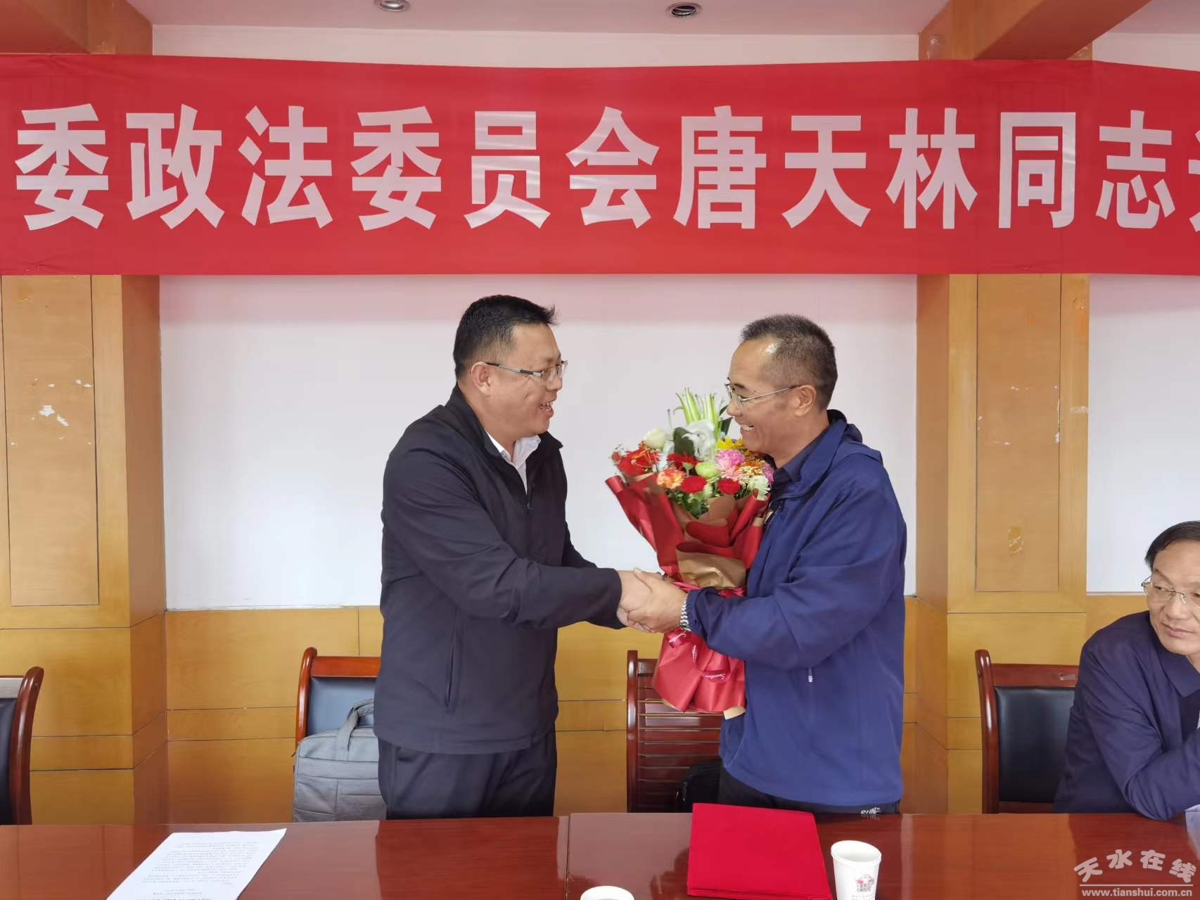 秦州区融媒体中心9月7日讯 近日,秦州区委政法委举行老干部光荣退休仪式。区委常委、政法委书记何炜巍出席仪式并讲话。