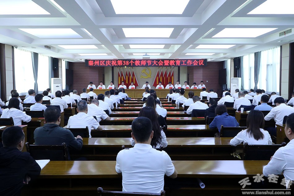 秦州区融媒体中心9月7日讯(记者 邵千)9月7日,秦州区召开庆祝第38个教师节暨教育工作会议。市委常委、秦州区委书记王东红出席会议并讲话。他强调,全区各级各部门、教育工作者要凝心聚力,奋发进取,苦干实干,在新时代努力办好人民满意的教育,不断开创教育发展新局面,为全面建设社会主义现代化国家做出积极贡献。区委副书记、区长孟晓龙主持会议。